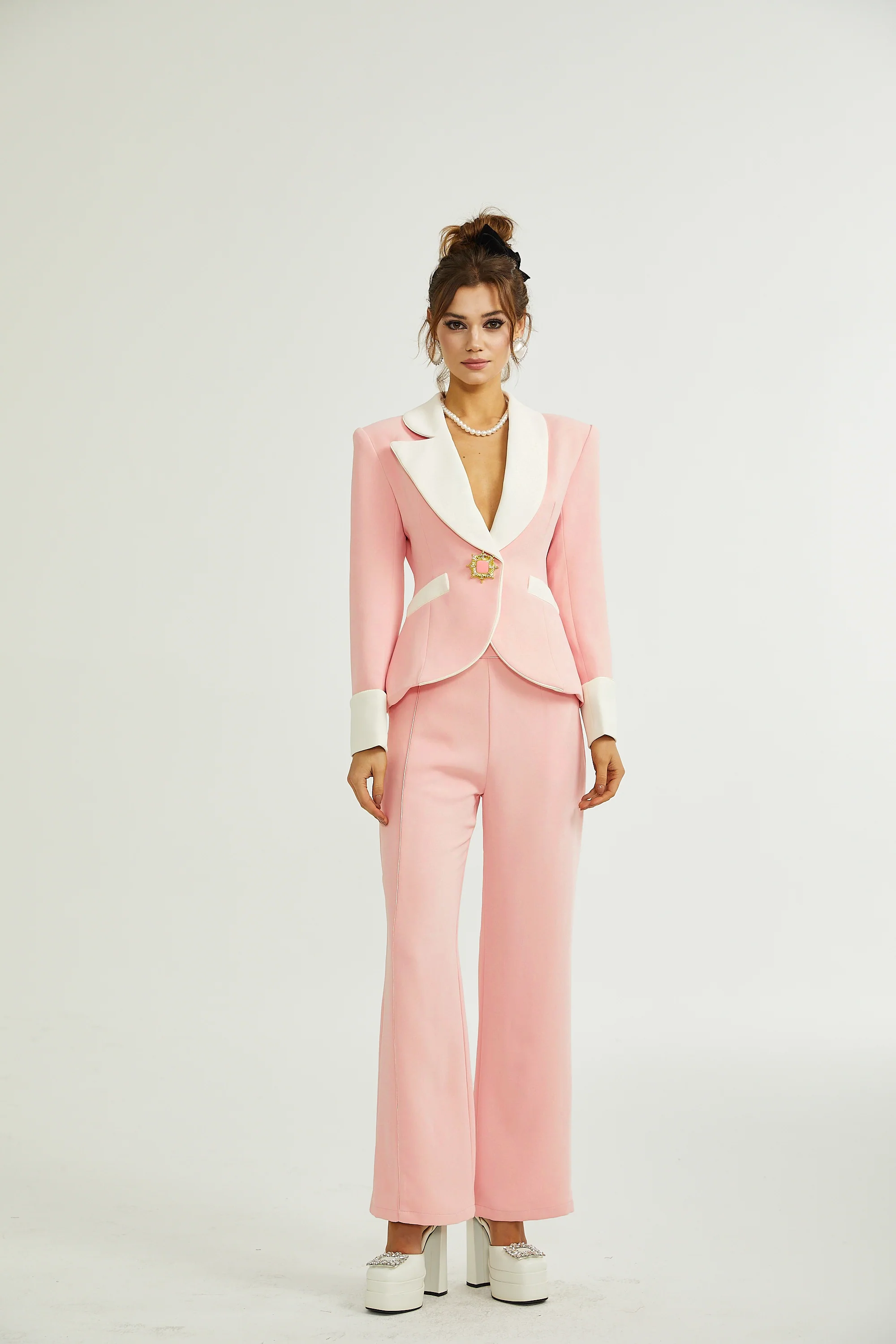 Claretta colour-block blazer & pants matching set