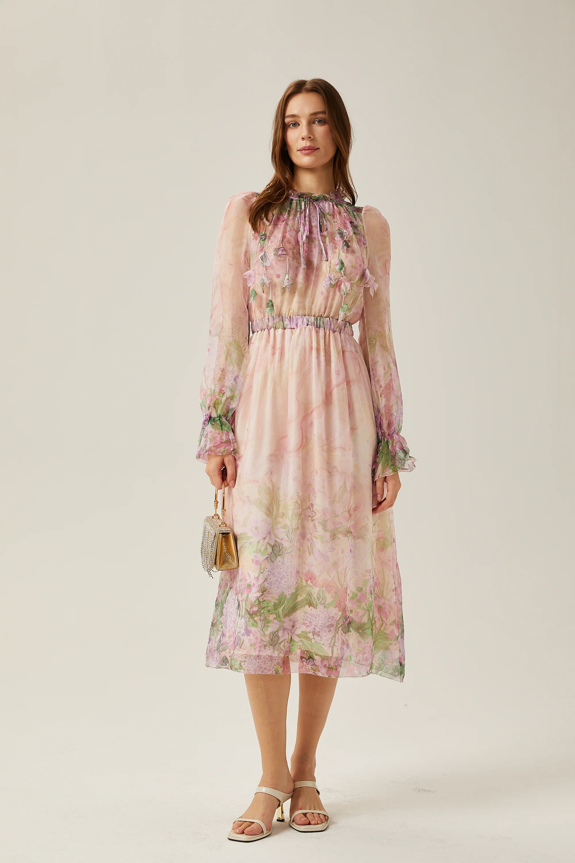 Justine floral-print cinched-waist midi dress